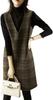 Allegra K Women's Round Collar Dress, Check Pattern, Button-Decorated, Flared A-Line Mini Dress, Brown, Size L