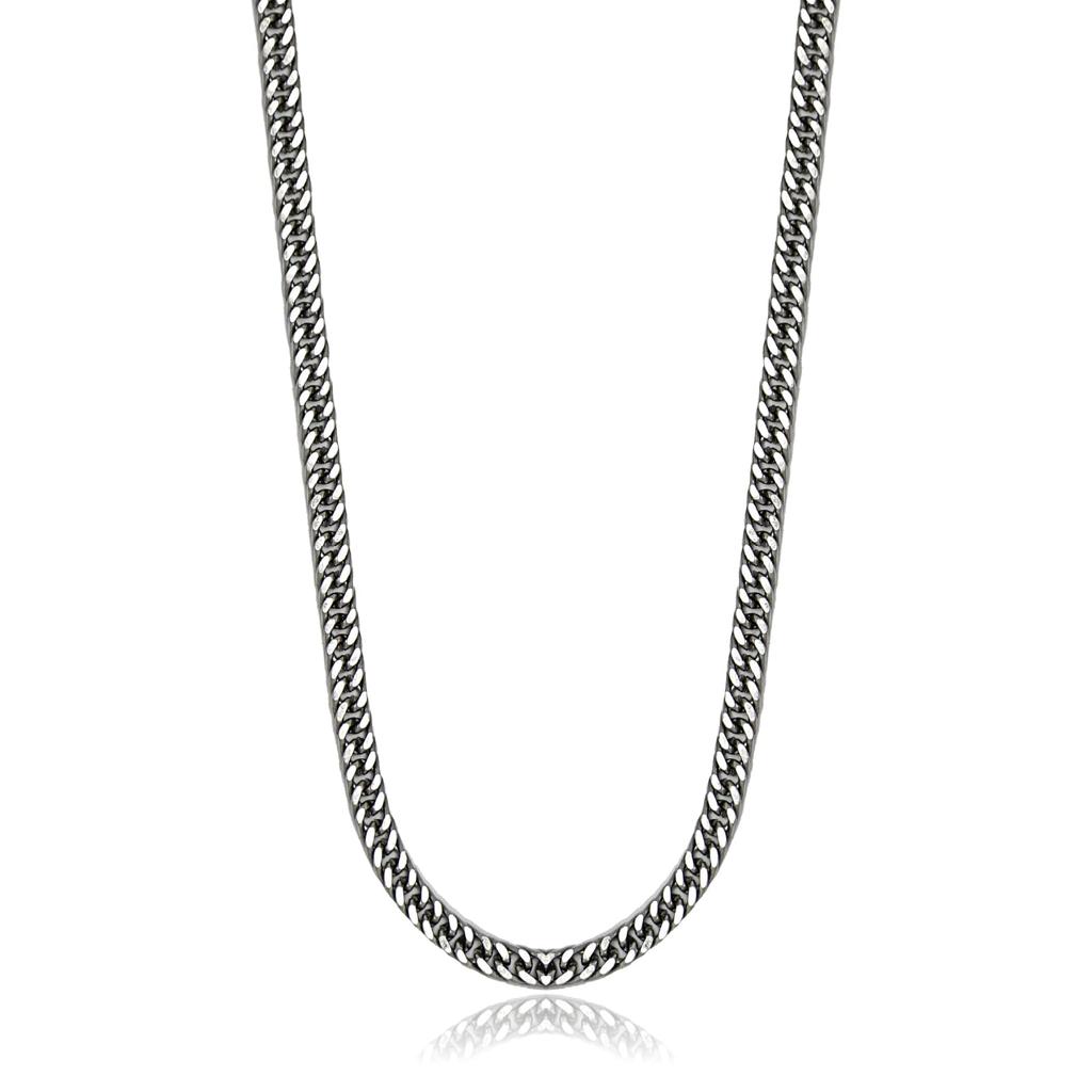 Brodiaea Men's Steel Herringbone Chain (S), Silver, Curb Chain Necklace, Fine Steel, Hypoallergenic [Total Length: 50cm]