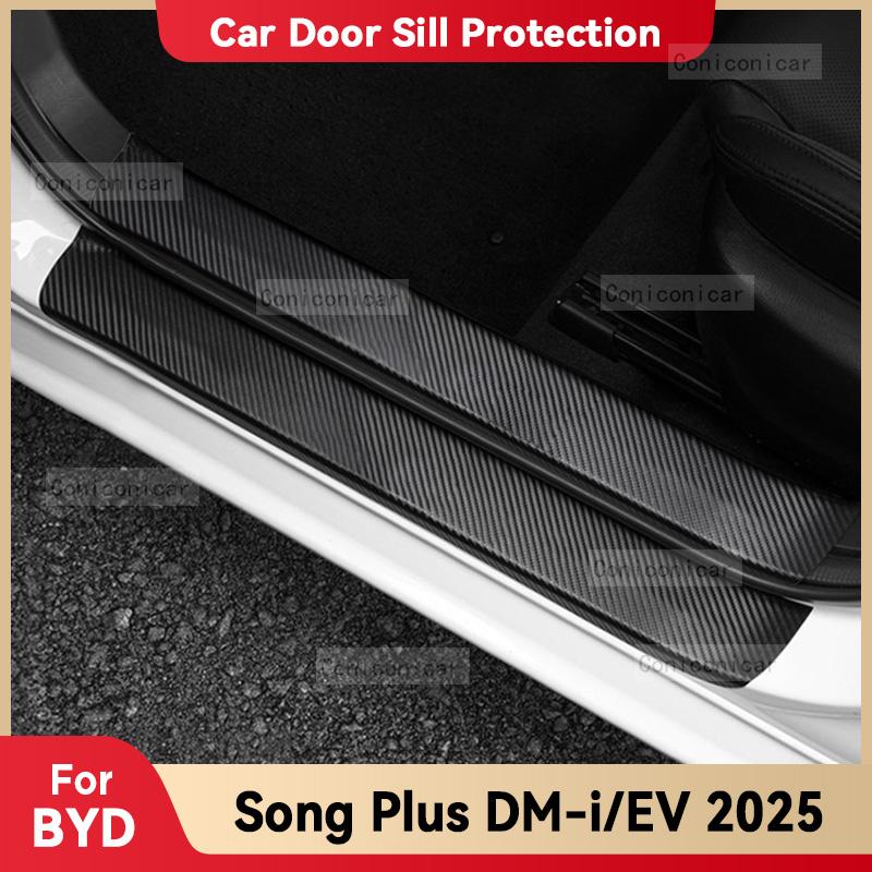 Car Carbon Fiber Door Sill Sticker For BYD Song Plus DM-i EV 2025 Threshold Pedal Anti-scratch Interior Accessories