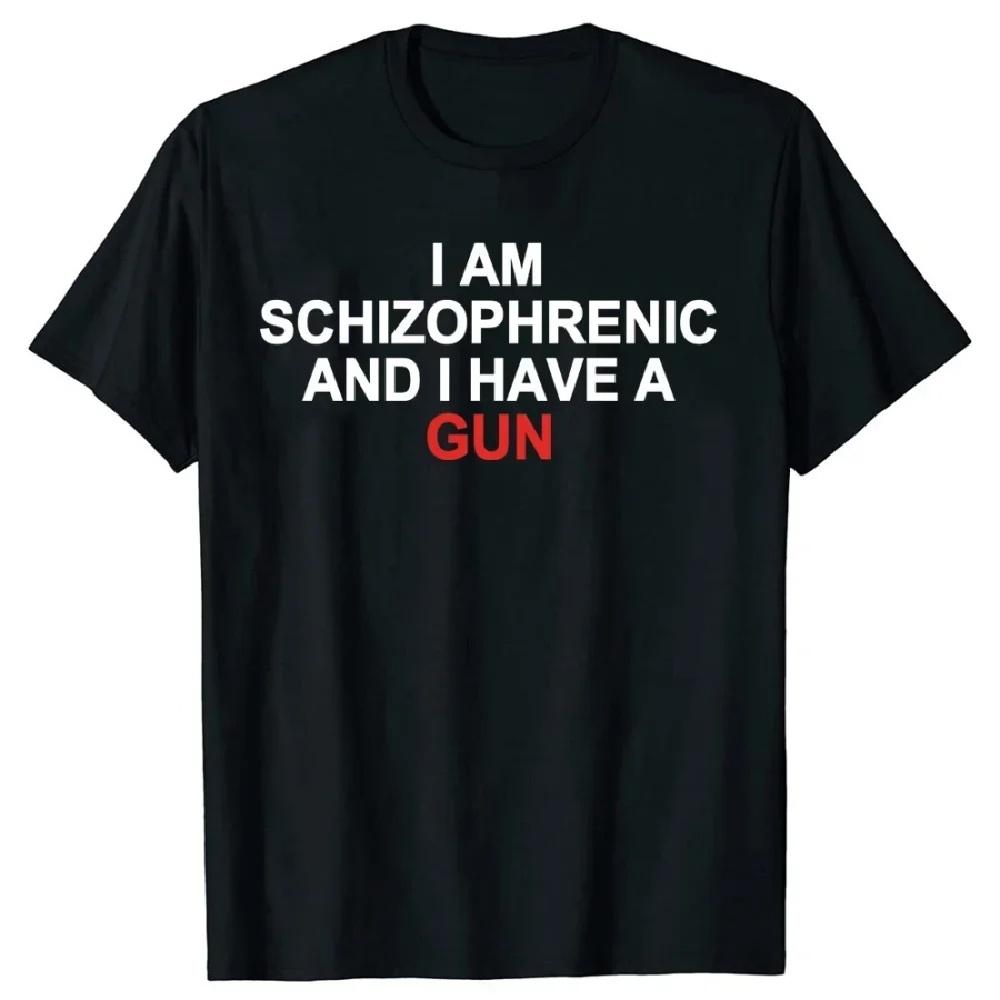 Jestem Schizofrenikiem i Mam Pistolet Koszulka Zabawna Grafika Streetwear Bawełna Unisex Letnia Krótki Rękaw Koszulki Rozmiar EU
