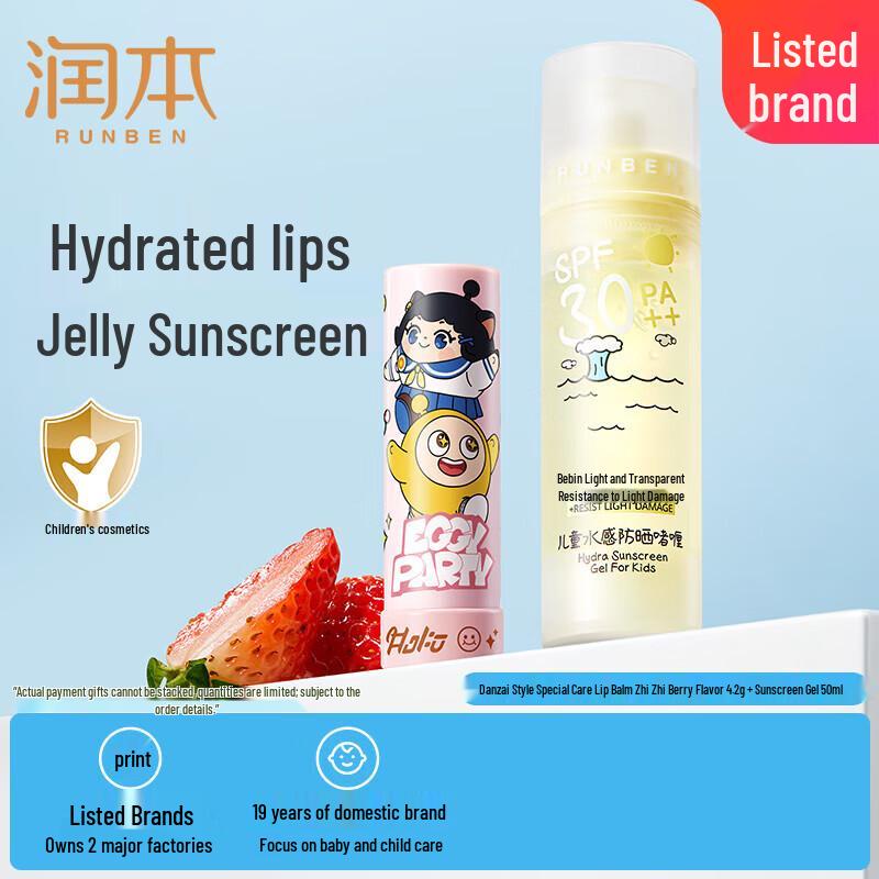 RUNBEN Kids Sunscreen Gel & Strawberry Egg Yolk Lip Balm Set