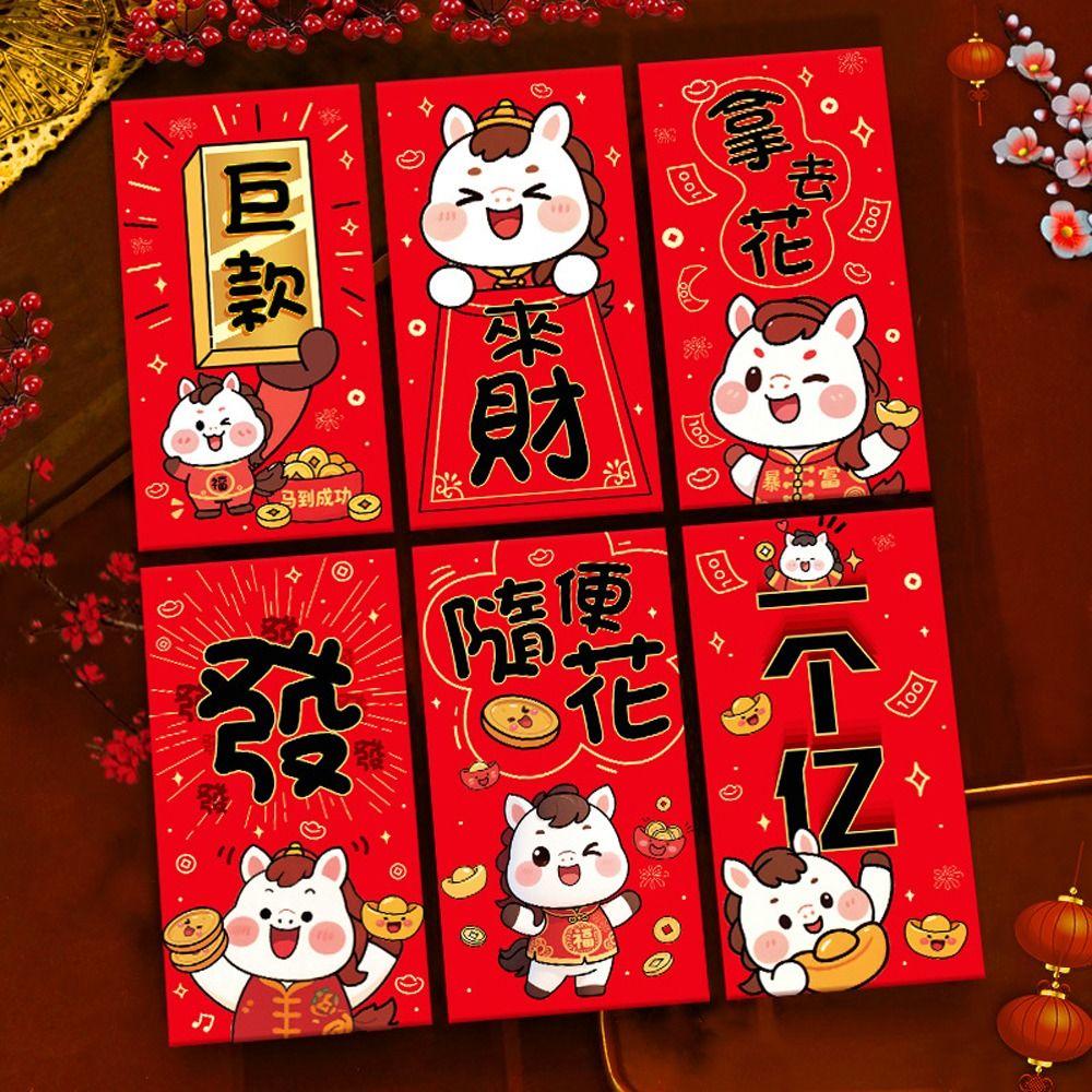 6pcs Gold Stamping Horse Year 2026 Red Envelope Cartoon Pattern Money Envelope Gift Giving