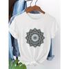 Damski T-shirt z krótkim rękawem z nadrukiem kwiatowej mandali, casualowy top z okrągłym dekoltem z turkusowo-czarną grafiką, miejski styl, koszulka z nadrukiem