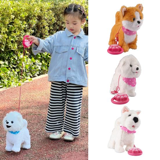 Interactive Walking Plush Puppy Toy with Touch Sensing Tongue Licking Motion Lifelike Sounds Electric Dog Plushie with Leash Simulation Stuffed