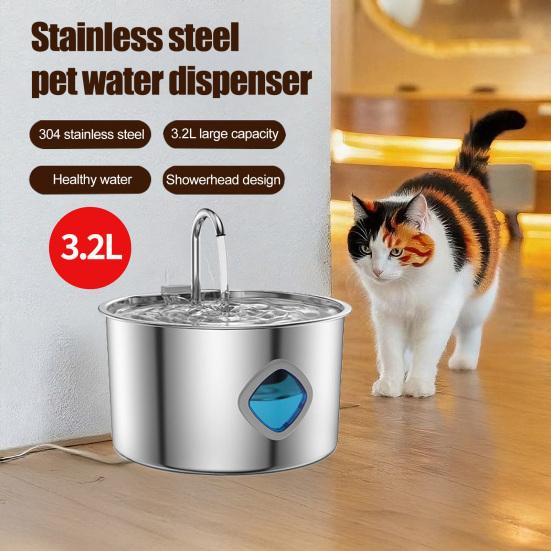 Fontanna dla psa 3,2L Stal nierdzewna Automatyczny dozownik wody Fontanna dla zwierząt z okienkiem poziomu wody Poczwórna filtracja Cicha fontanna dla kotów