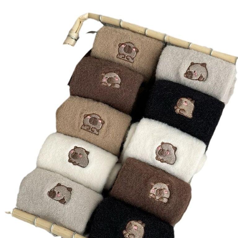 5-Pair Pack Exclusive Plush Socks For Women, /Winter, Mid-Calf, Thickened, Warm, Floor Socks, Mink Fleece Winter Socks