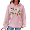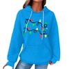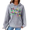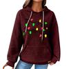 Damska Moda Luźny Pulower z Kapturem Długi Rękaw Koszulka Plaid ze Sznurkiem, Obniżone Ramię, Kieszeń, Top z Nadrukiem Świątecznym