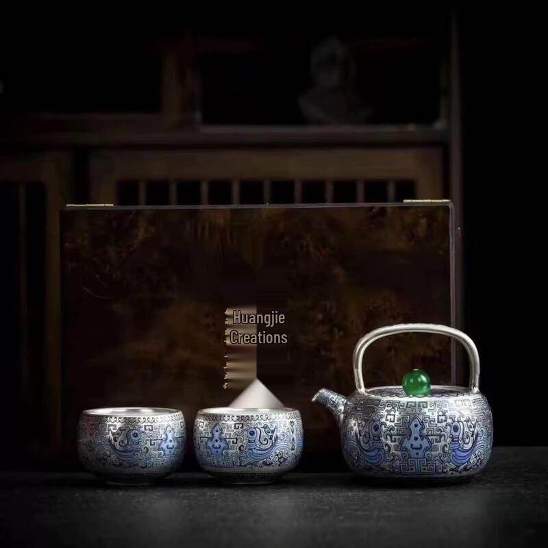 Gilded Silver Ceramic Tea Set with Lift-Beam Pot