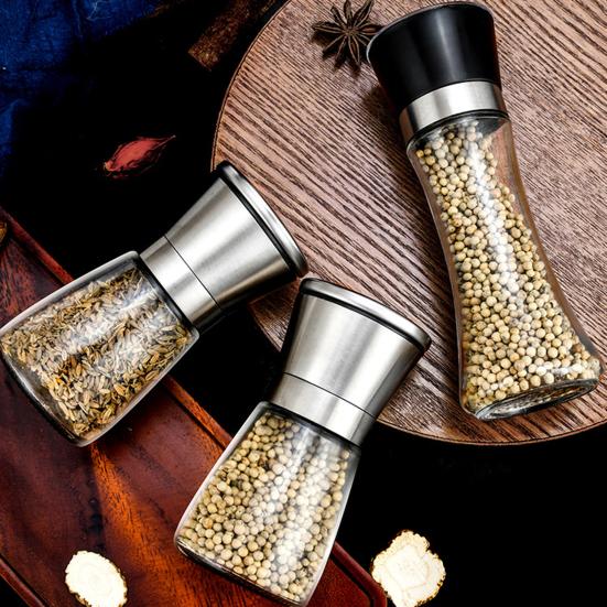 Młynek do pieprzu Stal nierdzewna Regulowany Ręczny Młynek do przypraw Pieprz czarny Sól morska Kmin Młynek Przezroczysty korpus Narzędzie kuchenne