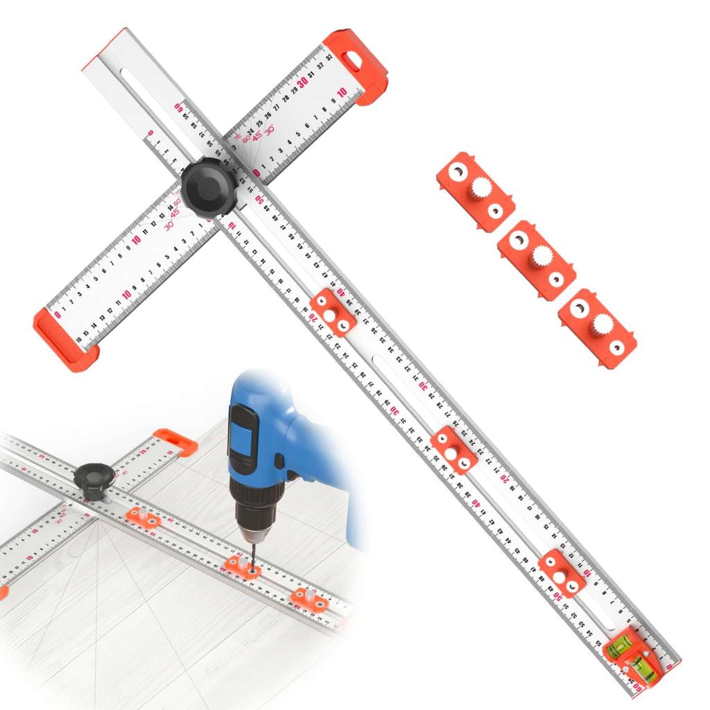 ARREBOL kątownik T, do wiercenia, pozycjonowania otworów, kątownik prostokątny, kątownik do obróbki drewna, wielofunkcyjny, aluminiowy