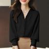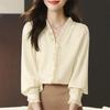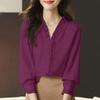 Damska codzienna bluzka z dekoltem w serek, w jednolitym kolorze, luźna, z długim rękawem