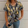 2025 New Geometric Patchwok 3d Print T-shirt Women Fashion V-Neck Oversized Short Sleeve Tshirt Casual Tops Tee Female Clothing