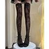 Women Flower Lace Fishnet Thigh Bowknot High Stockings Japanese Style Jk Girl Sweet Lace Trim Frilly Over Knee Long Socks