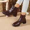 Retro chunky heel square-toe ankle boots for women, slimming winter bestseller with fleece lining for warmth and work