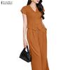 ZANZEA Damskie dwuczęściowe zestawy: bluzka z rękawem 3/4 i spodnie, casualowe, w paski