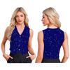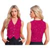 Women Sparkly Sequin Vest Sleeveless V-neck Irregular Hem Party Top for Cocktail Banquet Nightclub Summer