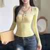 Koronkowa koszulka bazowa z długim rękawem T-shirt Damski Jesień Zima
