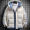 Koreańska i japońska męska zimowa modna młodzieżowa kurtka typu chleb z dwoma paskami, rekreacyjna kurtka z kapturem, ciepła, ocieplana bawełną.
