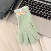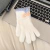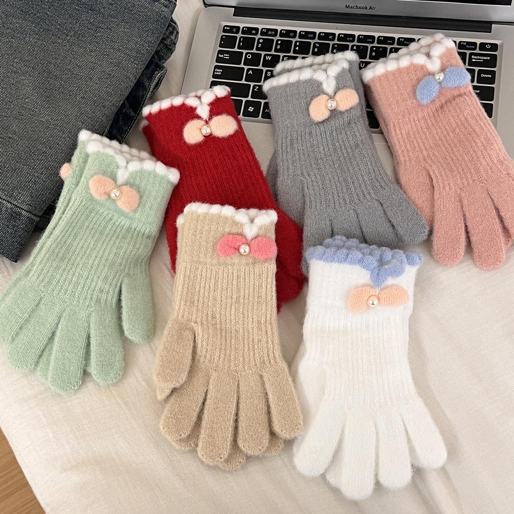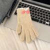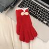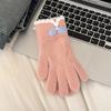 Bow knitted gloves women winter velvet warm cold students outdoor riding electric vehicle five fingers touch screen tide