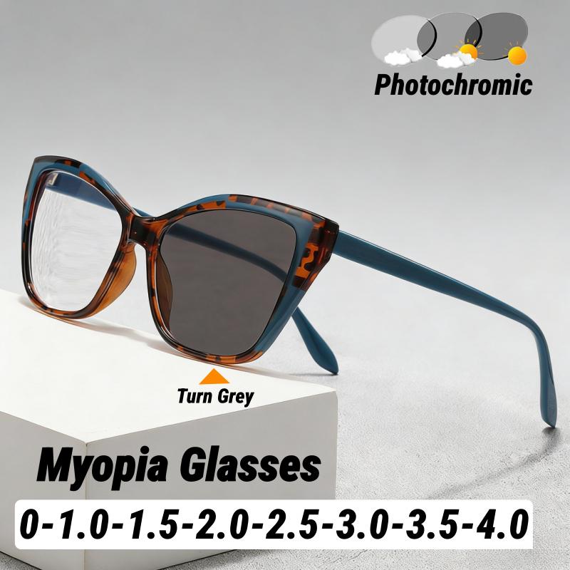 Fashion Cat-Eye Color-Block Frames Photochromic Myopia Glasses Large Frames Comfortable Anti Blue Light Near-Sighted Eyewear