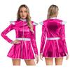 Futurystyczny Kostium Halloween dla Kobiet Błyszcząca Metaliczna Sukienka Aliena z Paskiem Strój na Imprezę Robota