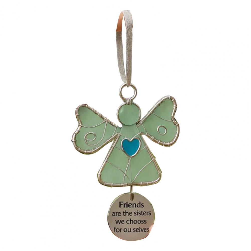 Christmas Pendant Angel Ornament with Glass Mosaic Heart Engraved Friendship Verse Hanging Decoration