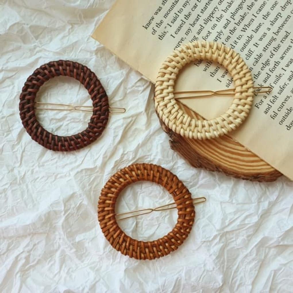 Damska Codzienna Okrągła Spinka do Włosów z Trzema Liniami Rattanowa