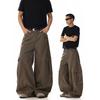 Kisko American Retro Washed Deconstructed Design Cargo Pants Unisex Trendy Loose Straight Casual Scimitar Pants