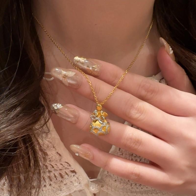 Vintage Zawieszki Wykwintny Szczotkowany Łuk Torebka Naszyjnik Diament Inkrustowany Lekki Luksus Elegancki Łańcuszek na Obojczyk Biżuteria Bankietowa Prezenty