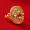 New Chinese Retro Enamel Ring Inlaid With Hetian Jade Unique Aventurous Craftsmanship, Adjustable Opening For Women