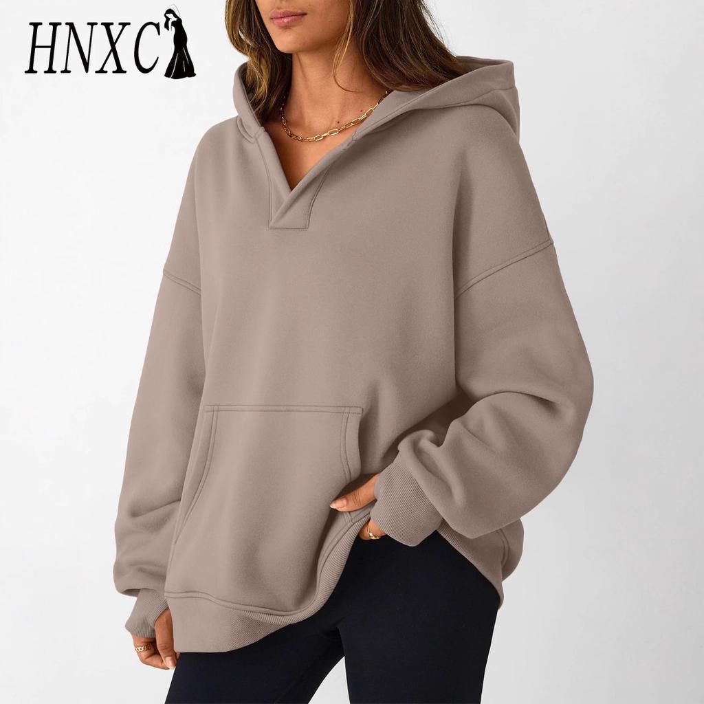HNXC Damska zimowa odzież sportowa Jednokolorowa Luźna z kieszenią Bluza z kapturem i długim rękawem dla kobiet