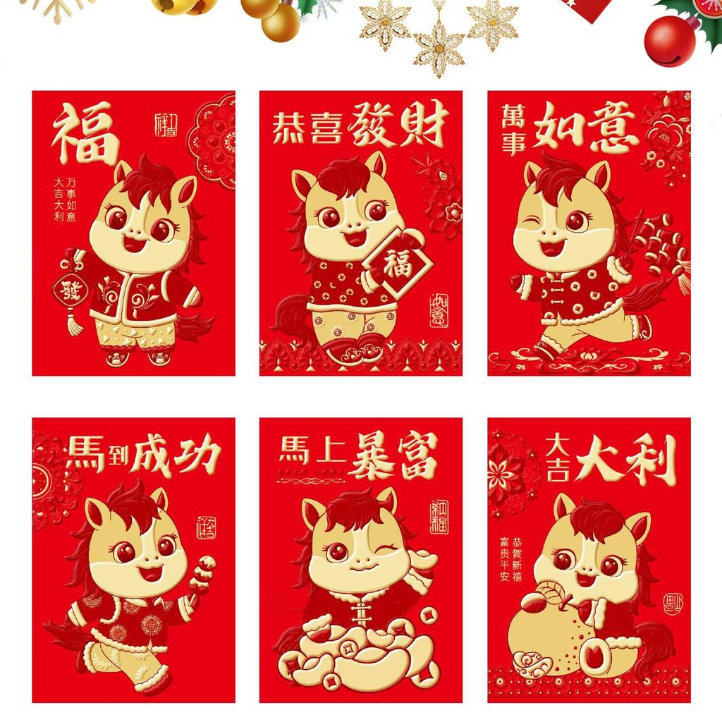 2026 Year Of The Horse Red Envelopes 6 Pieces Spring Festival Red Packets Holiday Supplies For Wedding Birthday Office Party