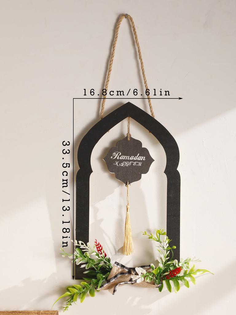 Ramadan Wooden Wall Hanging Decor Islamic Arch Design with Floral & Tassel Festive Home & Wall Decoration for Ramadan & Eid Gift