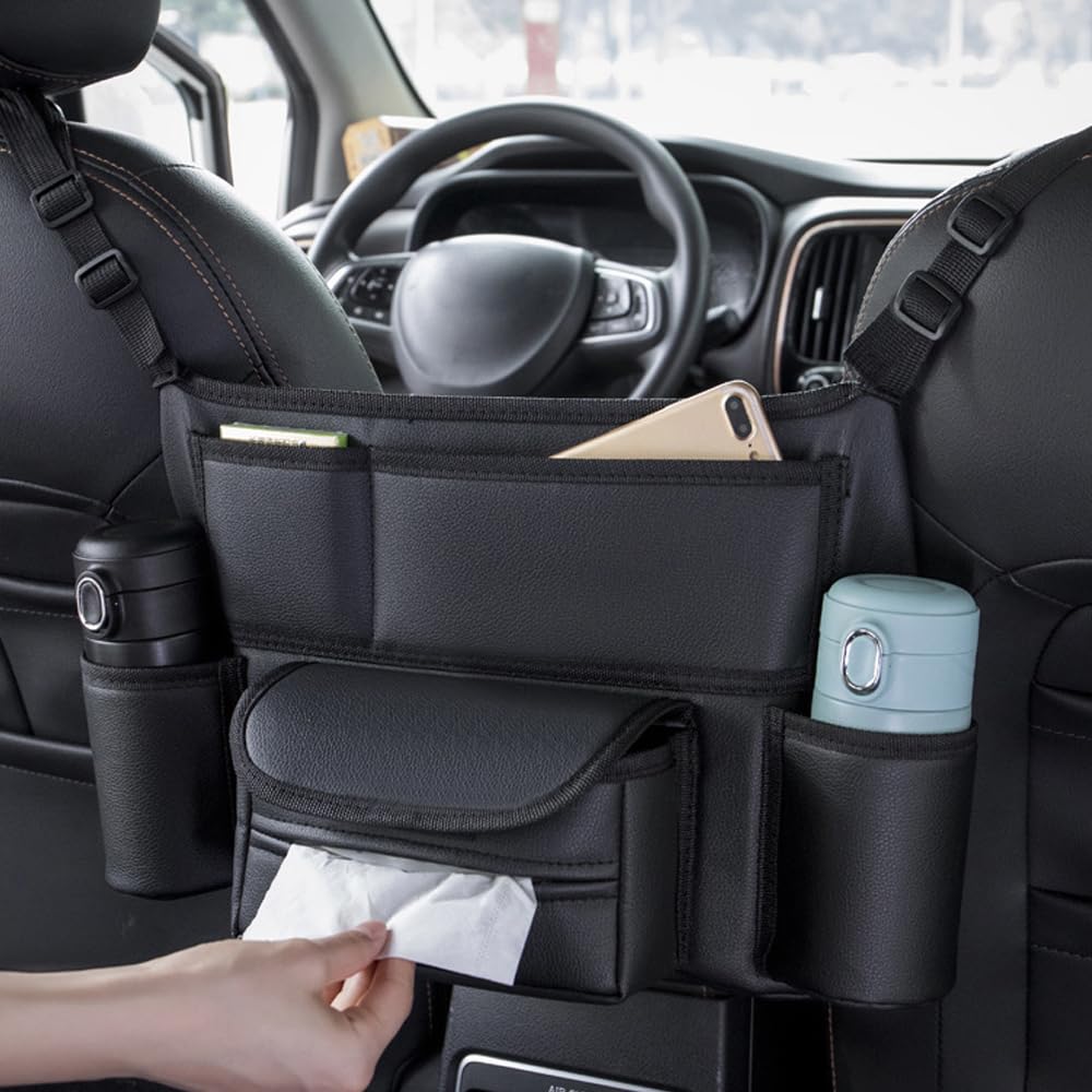 Car Hanging Headrest Multiple Small Item Organization Bag, Driver/Passenger Seat, Mount, Pockets, Storage,