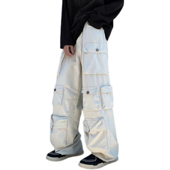 Men Cargo Pants Street Style Loose Multi Pockets American Retro Trousers Solid