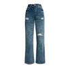 Women Jeans with Pockets High Waist Ripped Solid Color Full Length Pants