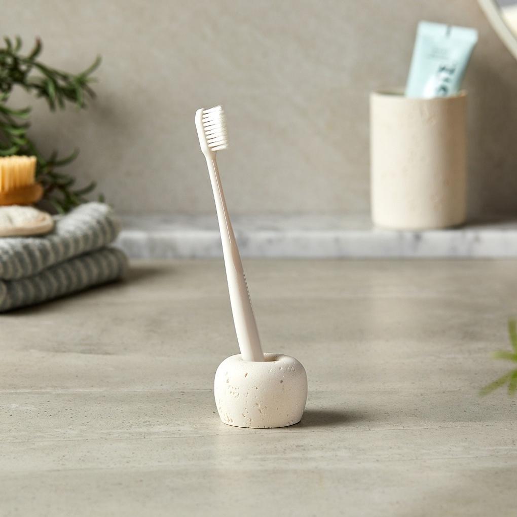 Kamiennobiały Okrągły Pojemnik na Szczoteczki do Zębów (1 jednostka)_BG0725001