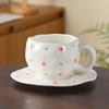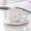 Small floral creative ceramic coffee cup and saucer, hand-squeezed, hand-painted irregular high-value breakfast cup