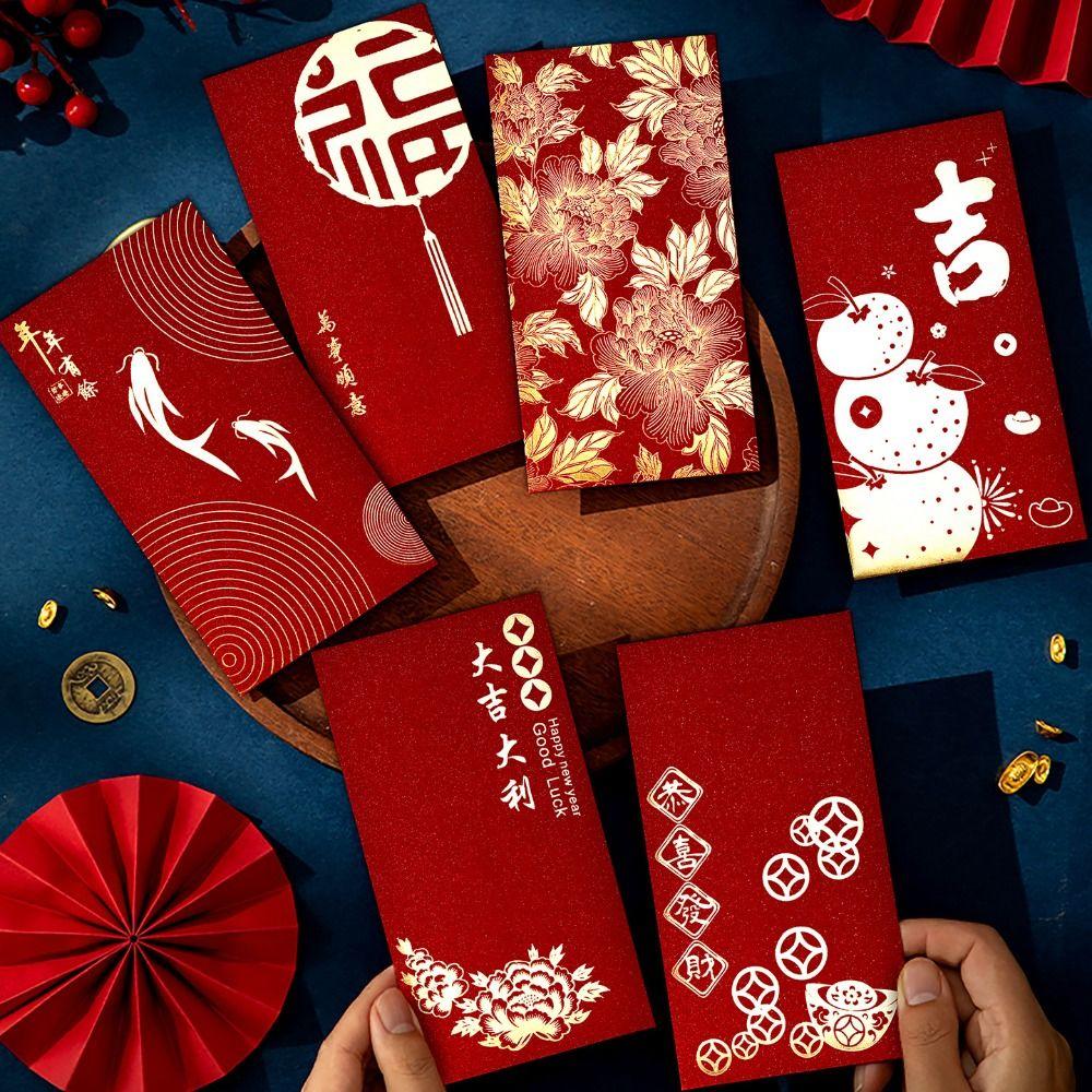 6Pcs Chinese Style Red Envelopes Gold Foil Design 2026 Luck Money Bag Spring Festival