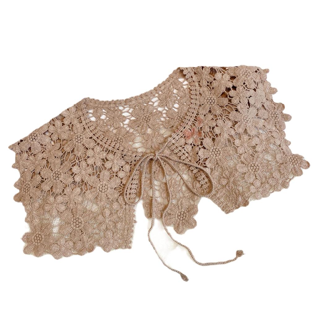 Ruffled Floral Print Detachable Collar, Stole, Scarf, Layering, Large Collar, Lace Shawl, Student, Casual, Beige