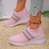 Modne Kolorowe Paski Damskie Buty Siateczkowe Oddychające Dzianinowe Płaskie Sneakersy Damskie Wiosenne Jesienne Sneakersy Siateczkowe Wsuwane Buty Casual Kobieta