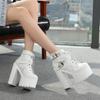 Moda 15CM Rosyjskie Gorące Wyprzedaże Damskie Buty Gruba Platforma Wysoki Obcas Damskie Botki Okrągły Nosek Sznurowane Zamek Motocyklowe Buty