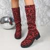 Fashion Women Knee-High Boots Autumn Winter Sexy Mid-calf Cowboy Boots Outdoor Platform Shoes for Women Trend Leopard High Boots Women