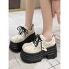 Fashion New 2025 Spring Women's Leather Sneakers High Platform Lace-up Casual Shoes Thick Sole 10CM Heels Walking Shoes Zapatos Mujer