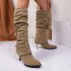 Fashion 2025 Street Style Pointed Toe Knee-High Boots Women High Heels Female Retro Belt Buckle Pleated Fashion Hot Seller Long Boot