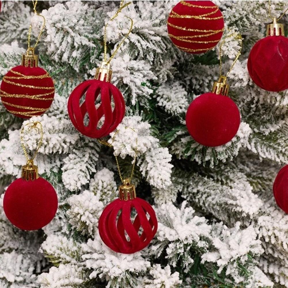 12pcs/Set 4CM Christmas Ball Ornaments Sparkling Velvet Christmas Spheres Plastic Flocking Christmas Tree Props Christmas Party