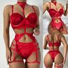 2023 Sexy Halter Underwear Deep V Bra Garters Briefs Set Porn Pajama Lace Collar Binding Leg Loop Perspective Femme Hot Lingerie