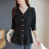 Lace Shirt Women's Long Sleeve Spring Autumn New V-neck Mid-length Waist Middle-aged Mother's Top Fashionable