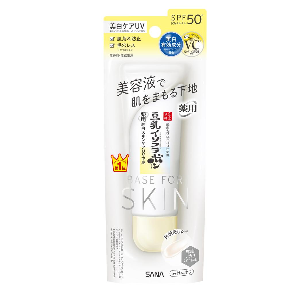 SANA Wygładzająca Baza pod Makijaż Medyczna Rozjaśniająca z Ochroną UV N: Czysta Biel | Rozjaśniające Przeciw podrażnieniom SPF50 PA++++ | Serum z izoflawonami soi | Zmywalne wodą