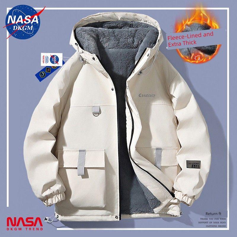 Nasa Fleece Jacket for Men, Spring, Autumn and Winter Hooded Jacket, Outdoor Windproof Thickened Lamb Fleece Mountaineering Jacket, Trendy Brand